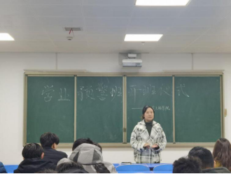 仪式伊始,王子嘉老师表示开设学业预警班级的目的是为了让同学们端正学习态度,养成良好的学习习惯,顺利通过不及格科目。她强调了要把握时间,充分利用起晚自习这一段时间来学习,做到劳逸结合,同时,她也希望同学们可以珍惜时间好好学习,取得优异成绩。