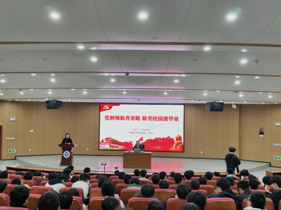 丁跃浇以“党纲领航青春路 最美校园谱华章”为题,围绕“党纲引领”与“青春成长”“校园发展”的紧密联系,从党的纲领和理论内涵讲起,结合学校办学实际和青年学生成长需求,深刻阐释了新时代青年在党的领导下,如何以青春之我、奋斗之我,在最美校园中书写人生华章、为学校发展和社会进步贡献力量,为师生带来了一堂立意高远、内涵丰富的专题思政课。