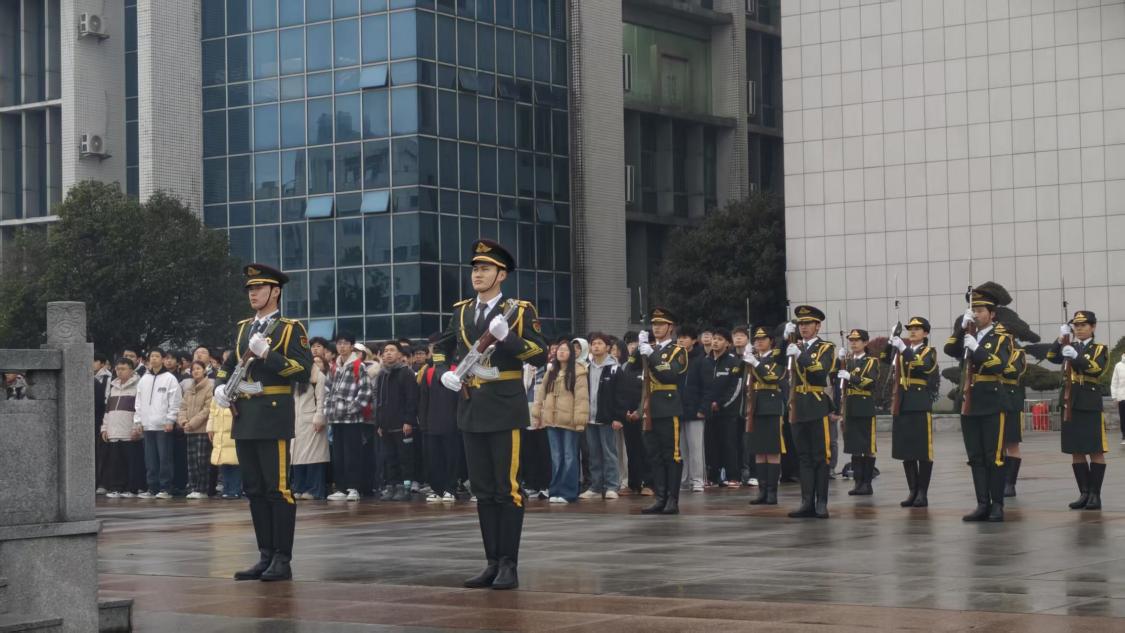 仪式现场,国旗仪仗队身着统一制服,迈着铿锵整齐的步伐护送五星红旗至升旗台。全体师生肃立注目,伴随着雄壮激昂的《义勇军进行曲》,鲜艳的国旗冉冉升起、迎风飘扬,爱国情怀与奋进力量在每一位在场者心中激荡,现场氛围庄重而热烈。