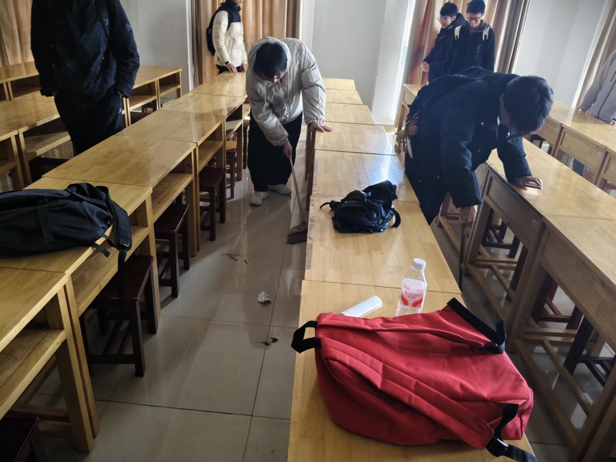 每周二和周五是固定的劳动日,新生们以班级为单位分组行动,迅速投入到各个责任区域。在16号、18号教学楼内,同学们分工协作,有的细致清扫教室地面的纸屑与灰尘,有的认真擦拭黑板、讲台及课桌椅,有的对多媒体设备、门窗玻璃等进行全面清洁,不放过任何一个卫生死角;在教学楼周边及20号宿舍楼周边区域,大家手持工具,有条不紊地清理绿化带内的杂草、枯枝和白色垃圾,规范摆放乱停乱放的共享单车,细致擦拭公共区域的栏杆与指示牌。劳动过程中,同学们热情高涨、默契配合,不怕脏、不怕累,汗水浸湿了衣衫却依旧干劲十足,现场呈现出一派热火朝天的劳动景象。辅导员全程跟班指导,及时解决劳动中遇到的问题,与同学们一同参与劳动,营造了师生同心、共建美丽校园的良好氛围。