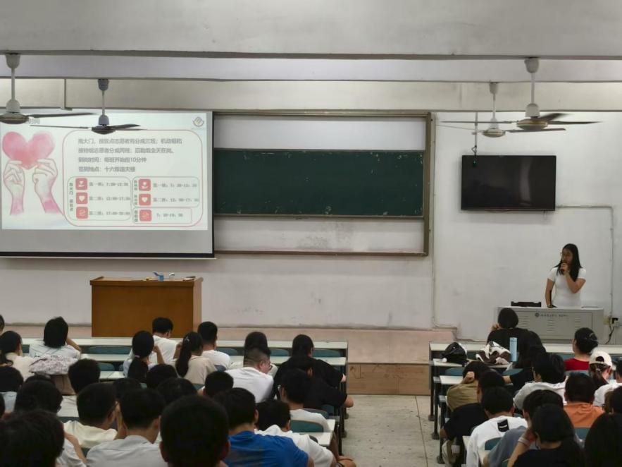随后,院团学常规事务部部长陈柚丞围绕迎新工作实操要点展开细致讲解,内容涵盖志愿者工作时间节点、全流程服务规范、各岗位具体职责及迎新期间注意事项等。她强调,全体志愿者需严格遵守岗位纪律,服从统一调配,以“积极热情、认真负责”的态度,耐心解答新生疑问、细致协助办理手续,用实际行动展现大学生的良好素养与担当。